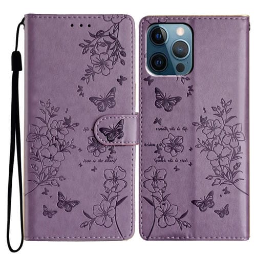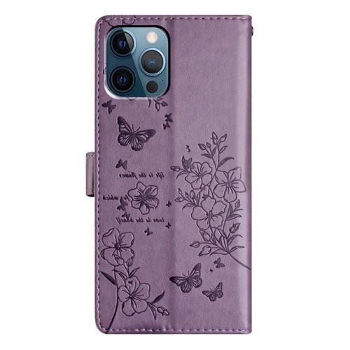 Funda de Cuero iPhone 12 Pro Max Butterfly Love Flower En Relieve (Púrpura)