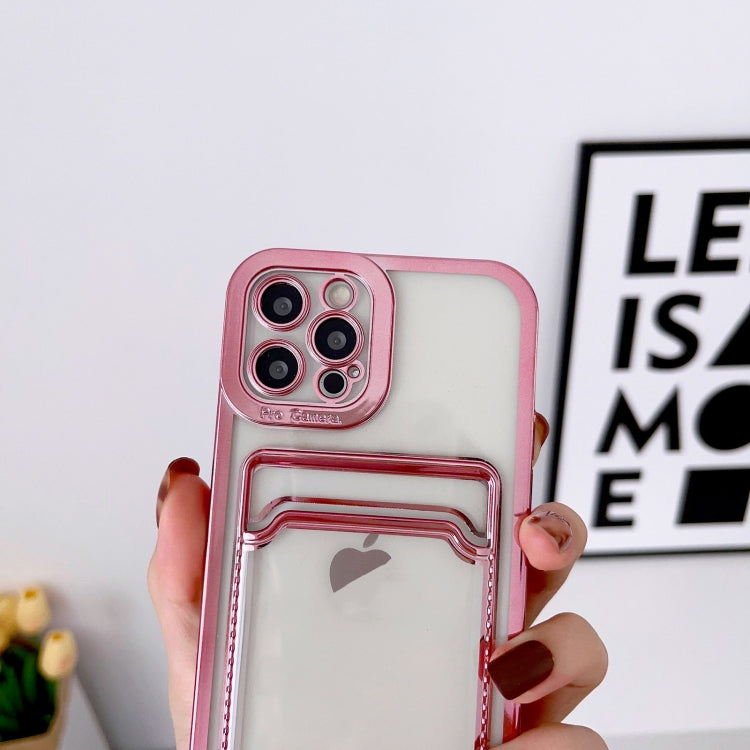 Caja de Teléfono iPhone 12 Pro Max Ranura para Tarjeta Marco de Galvanoplastia (Azul)