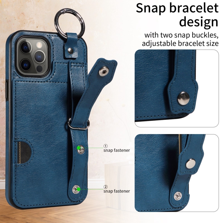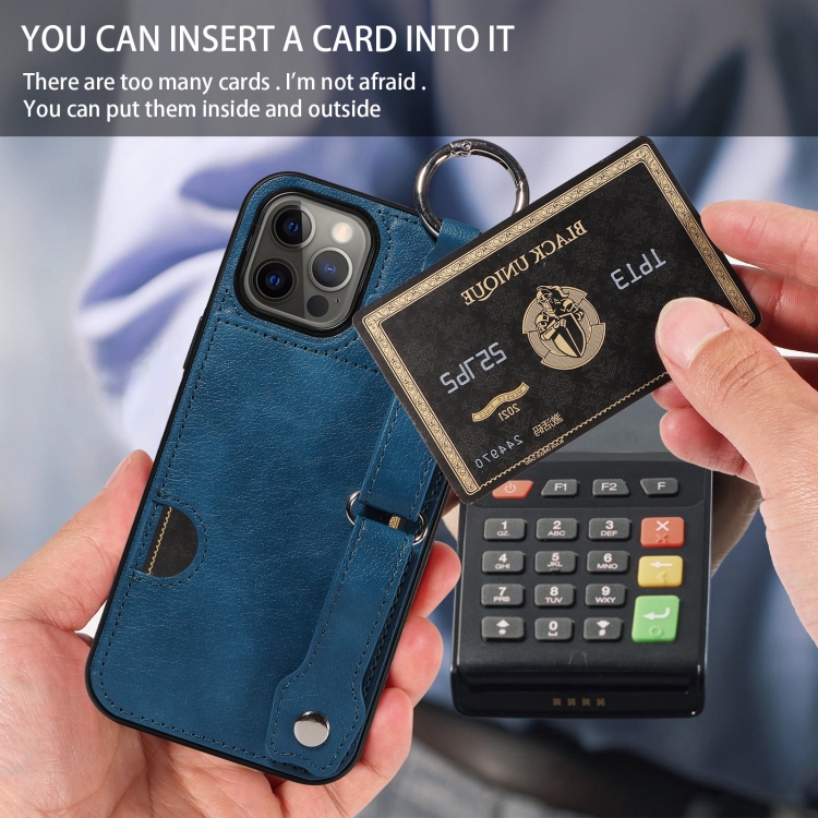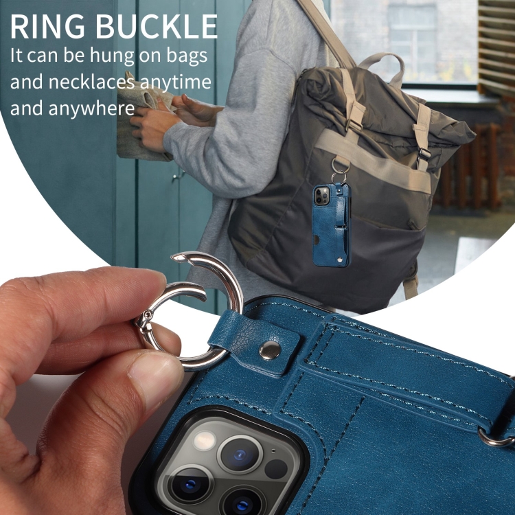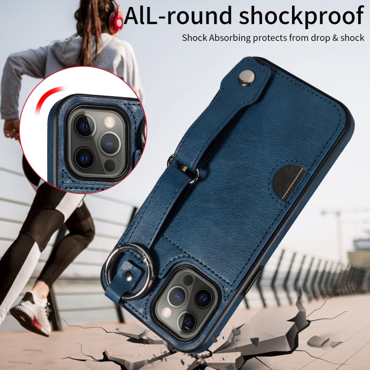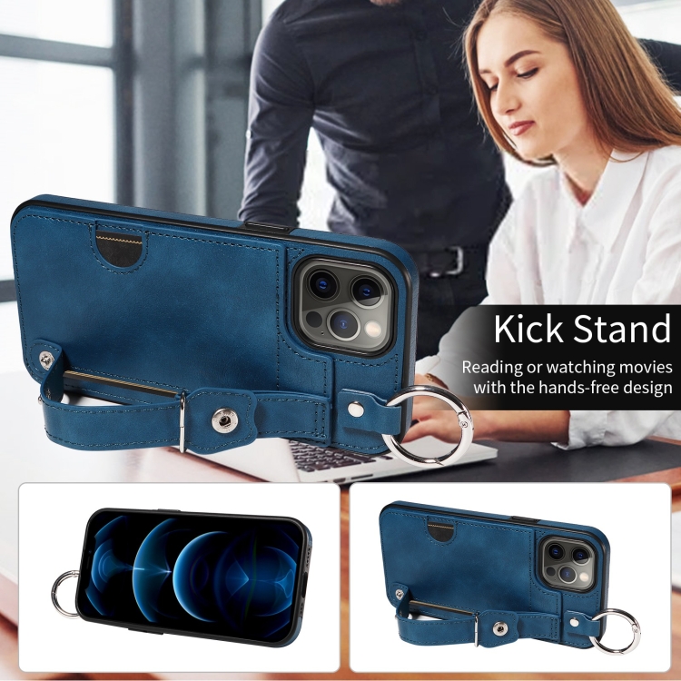Caja de teléfono para iPhone 12 Pro Max con anillo y ranura para tarjeta con textura de pantorrilla (Azul)