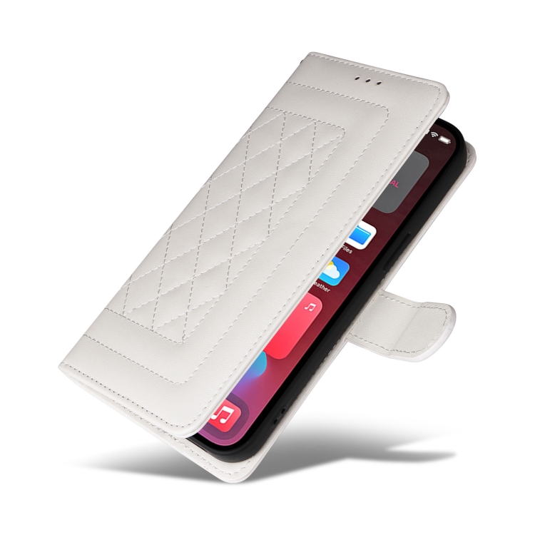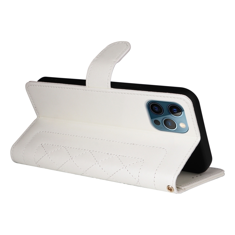 Funda para iPhone 12 Pro Max Diamond Lattice Cuero con Tapa (Blanco)