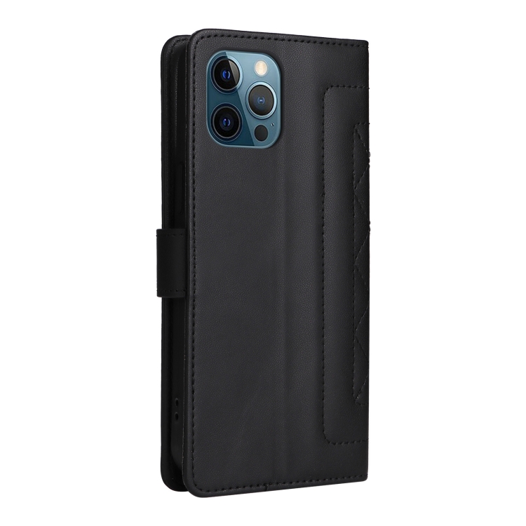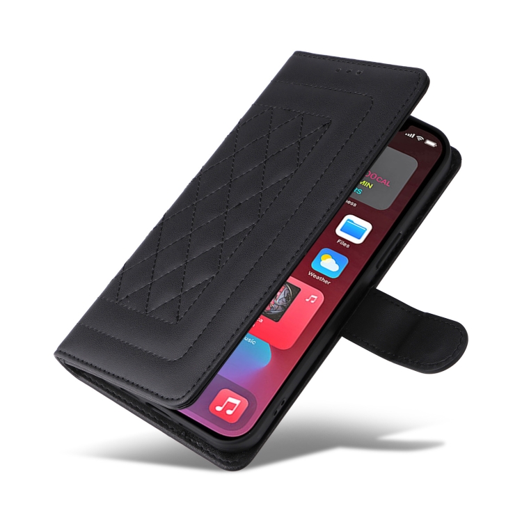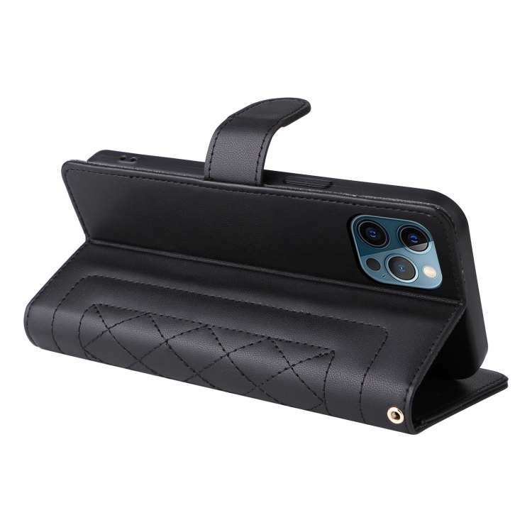 Funda para iPhone 12 Pro Max Diamond Lattice Cuero con Tapa (Negro)