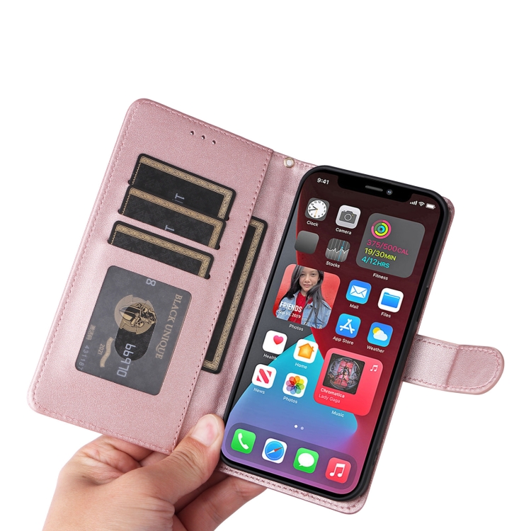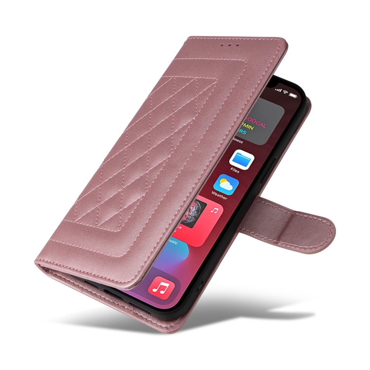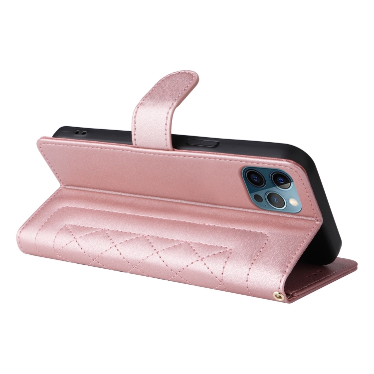 Funda para iPhone 12 Pro Max Diamond Lattice de Cuero con Tapa (Oro Rosa)