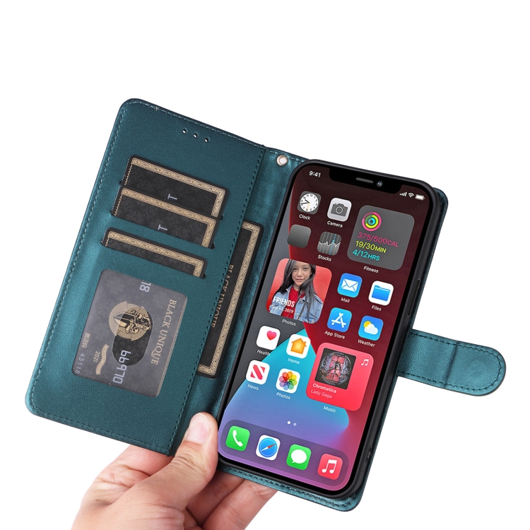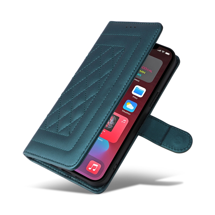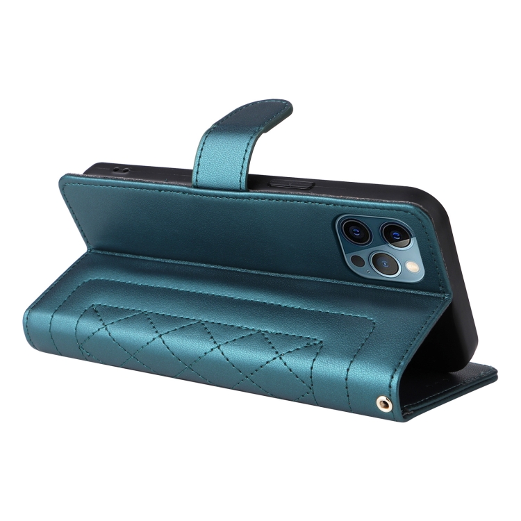 Funda para iPhone 12 Pro Max Diamond Lattice de Cuero con Tapa (Verde)