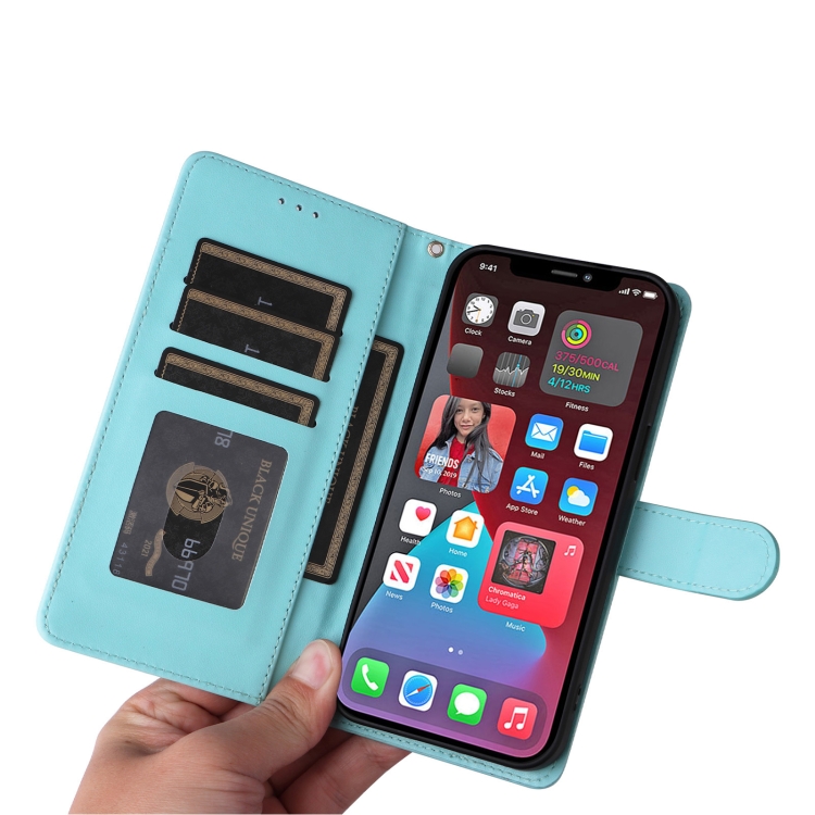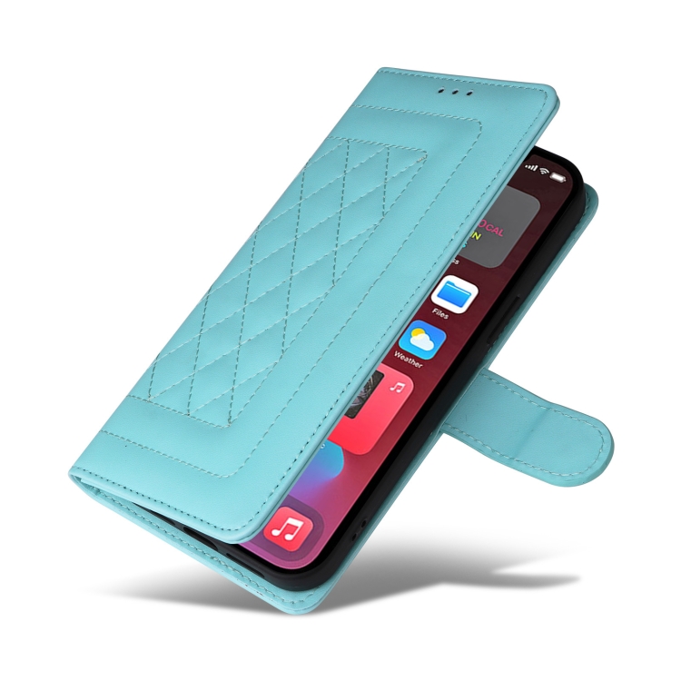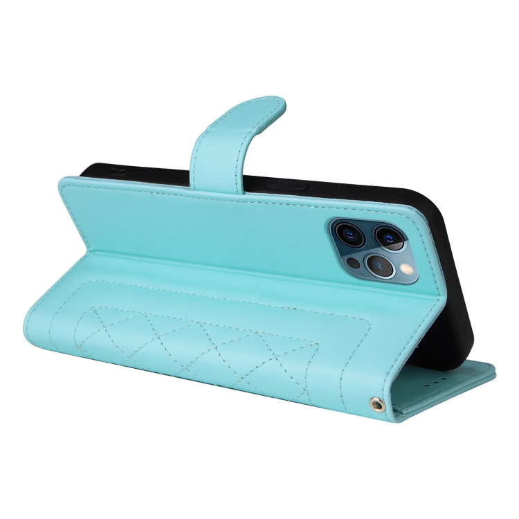 Funda para iPhone 12 Pro Max Diamond Lattice de Cuero con Tapa (Verde Menta)