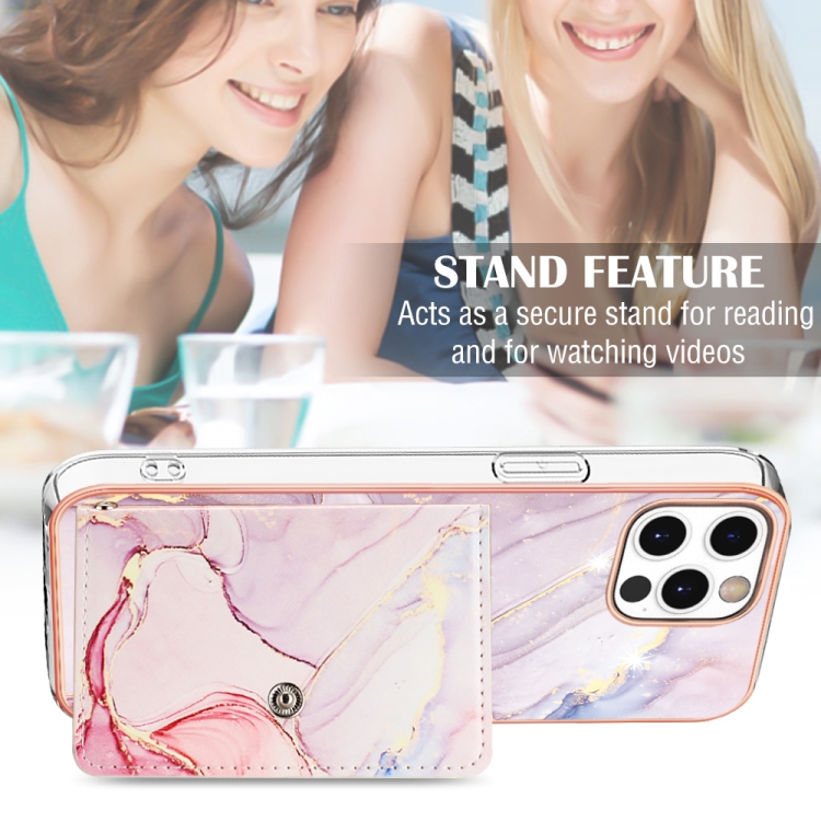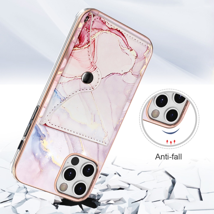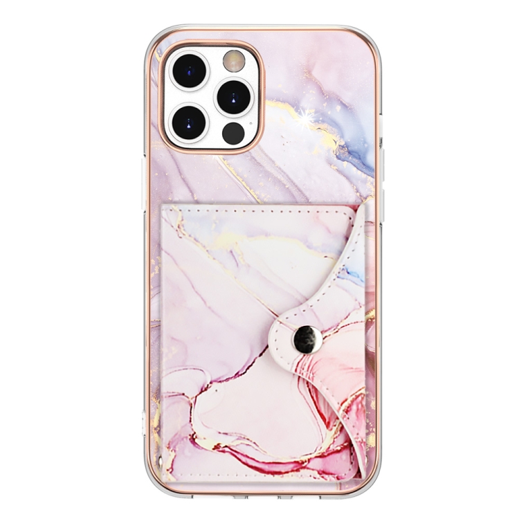 Estuche para Teléfono iPhone 12 Pro Max con Ranura para Tarjeta Imd Patrón Mármol (Oro Rosa)