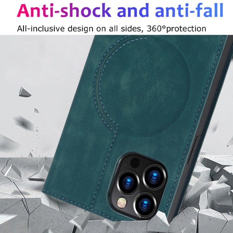 Estuche para Teléfono iPhone 12 Pro Max Cuero con Carga Inalámbrica Magsafe (Azul)
