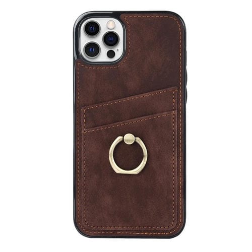 Estuche para Teléfono iPhone 12 Pro Max Cuero Parche Vintage Soporte para Anillo (Marrón)