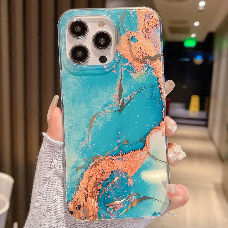 Estuche para Teléfono iPhone 12 Pro Max Mármol Esmaltado Color (Dorado Verde)