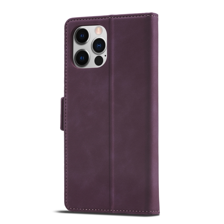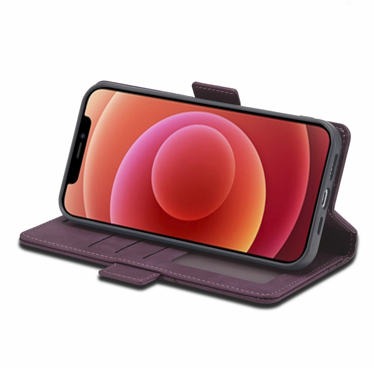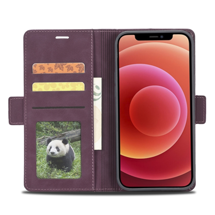 Funda de Cuero FoRWenw para iPhone 12 Pro Max con Hebilla de Doble Cara (Rojo Vino)