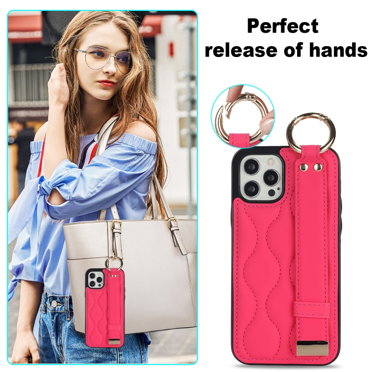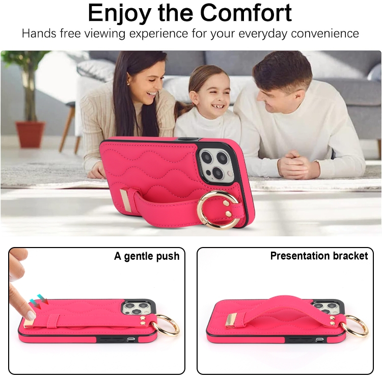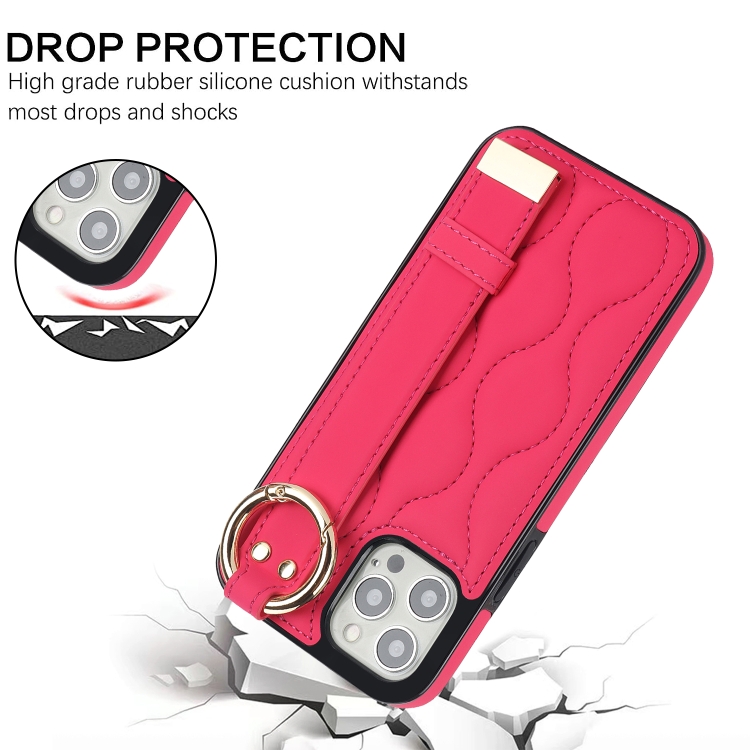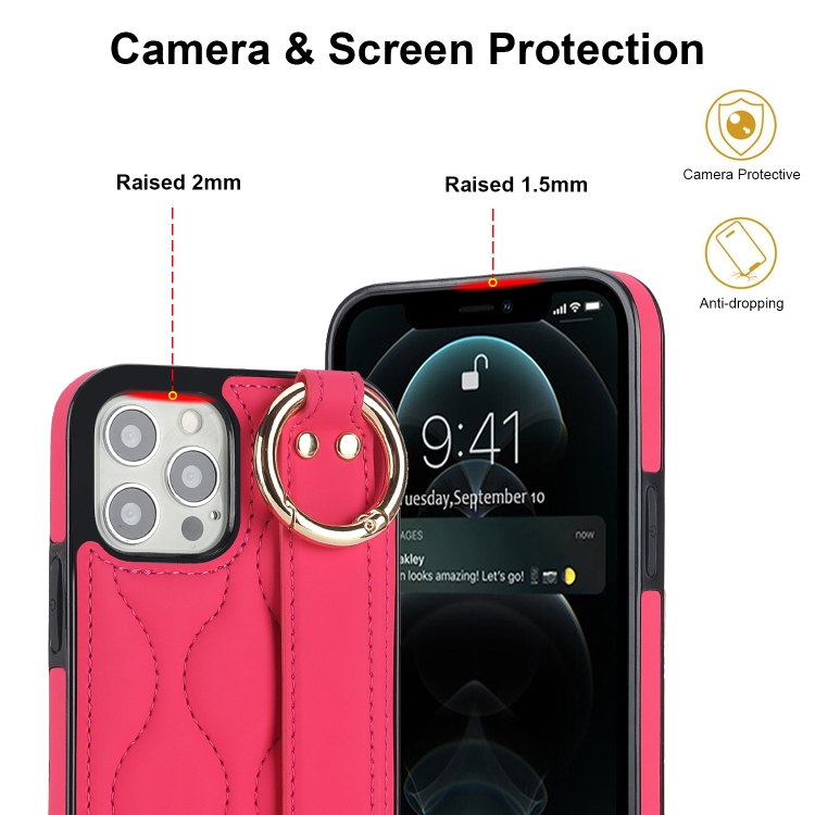 Funda para Teléfono iPhone 12 Pro Max Antideslizante con Anillo Cobertura Completa Pu con Muñequera (Rose Red)