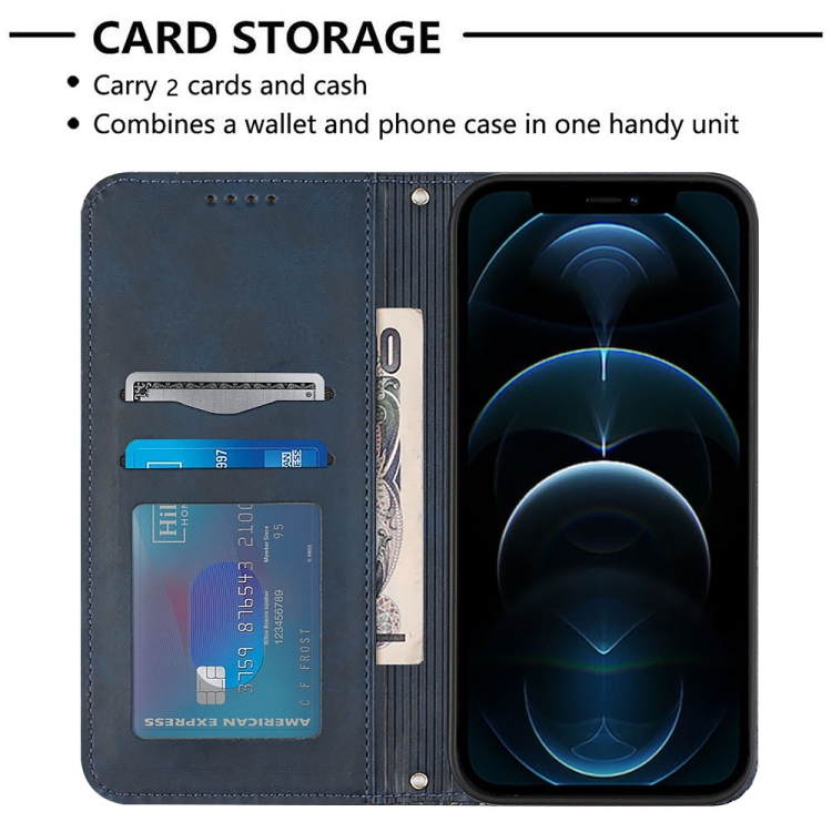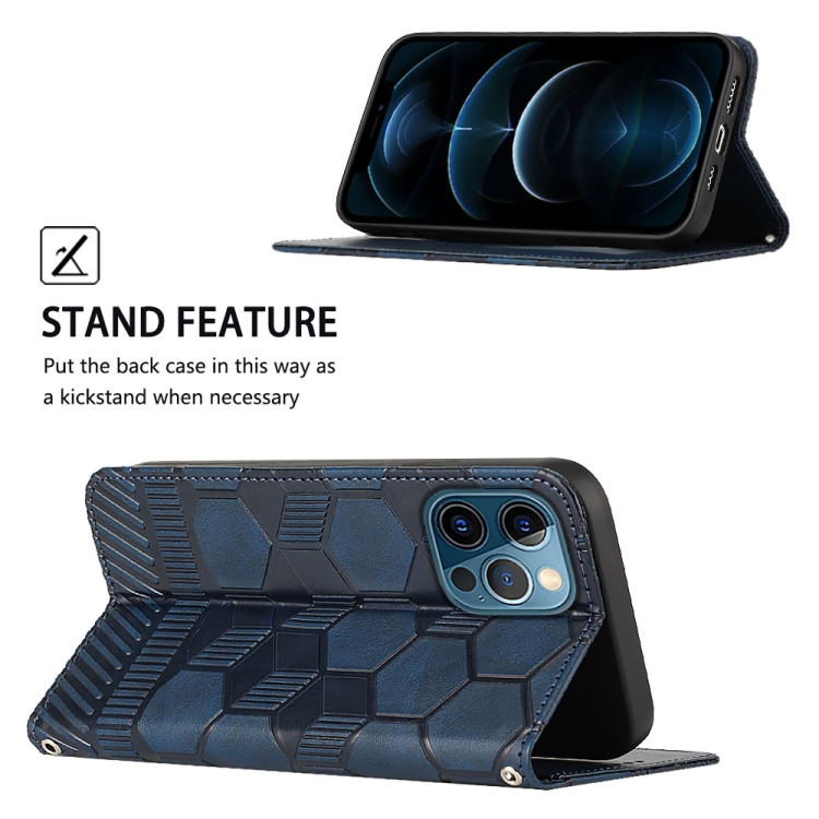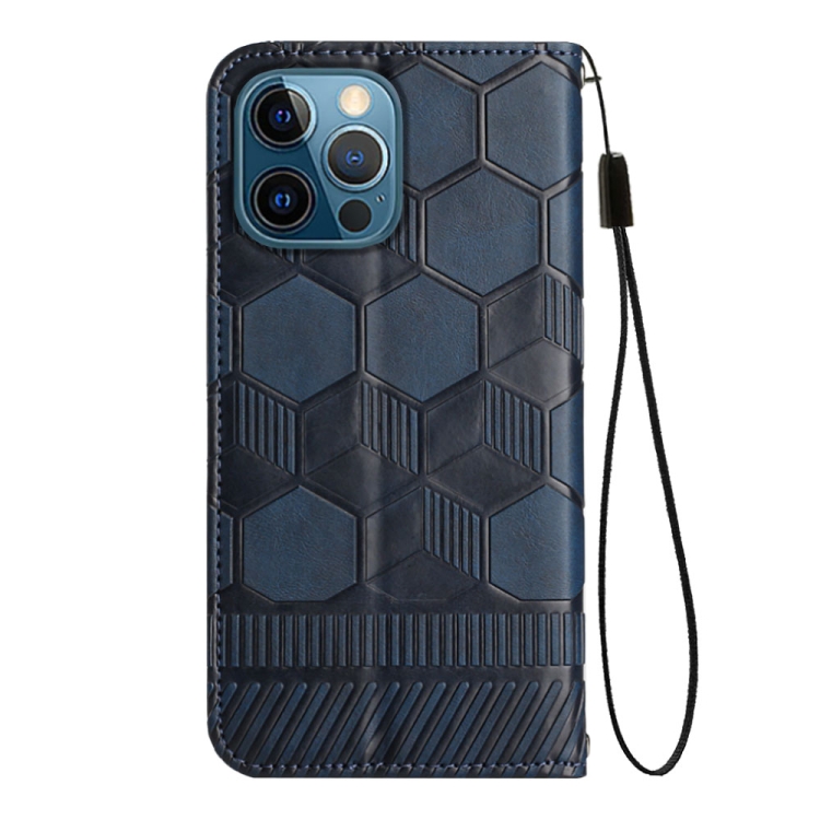 Funda de Teléfono iPhone 12 Pro Max con Tapa de Cuero Magnético Textura de Fútbol (Azul Oscuro)