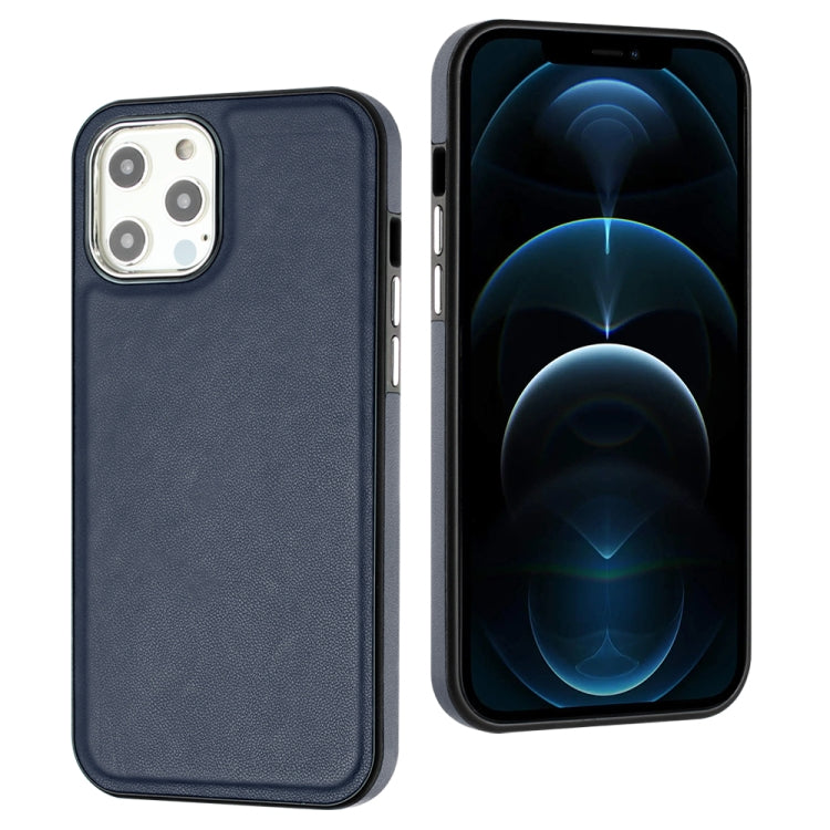 Funda de Teléfono para iPhone 12 Pro Max Cobertura Total Textura de Cuero (Azul)