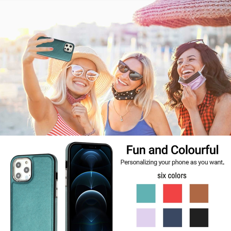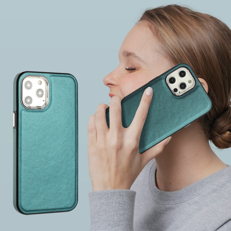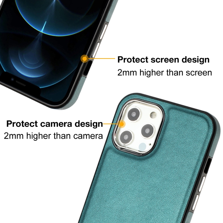 Funda de Teléfono para iPhone 12 Pro Max Cobertura Total Textura de Cuero (Verde)