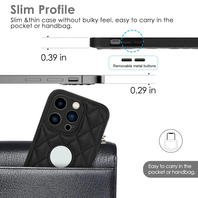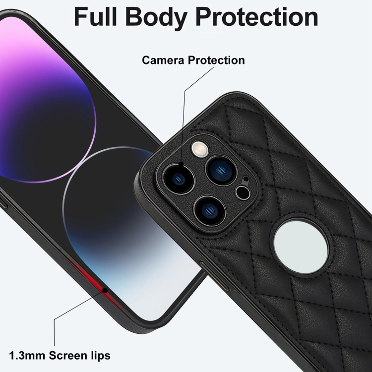 Funda para Teléfono iPhone 12 Pro Max Contraportada de Cuero Rómbico (Negro)