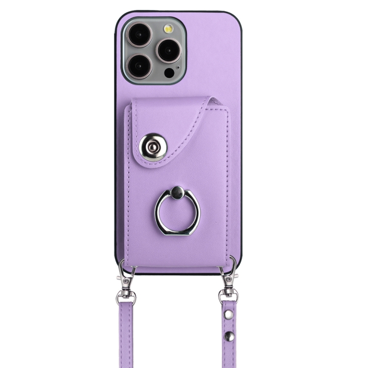 Funda para Teléfono iPhone 12 Pro Max con Soporte para Anillo y Bolsa para Tarjeta con Cordón Largo (Púrpura)