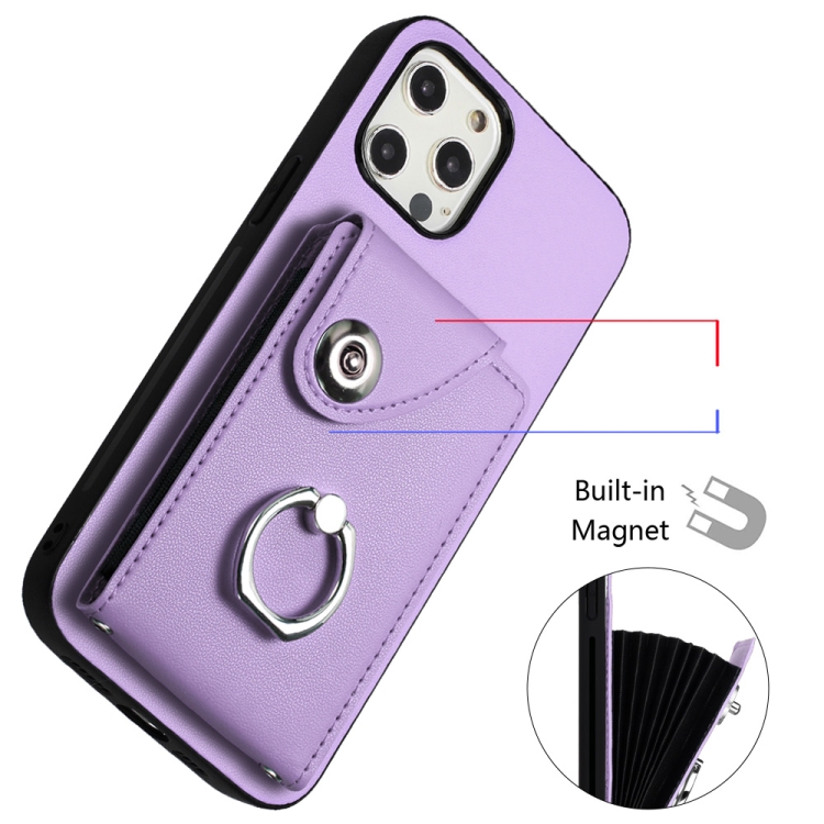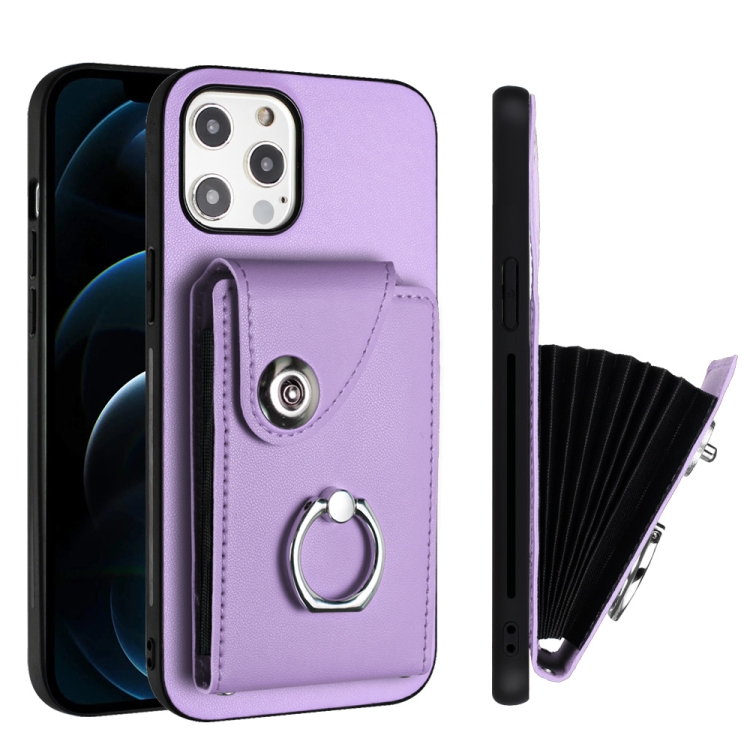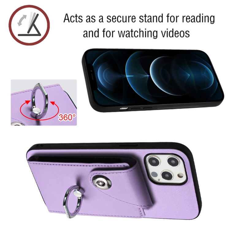 Funda para Teléfono iPhone 12 Pro Max con Soporte para Anillo y Bolsa para Tarjeta (Púrpura)