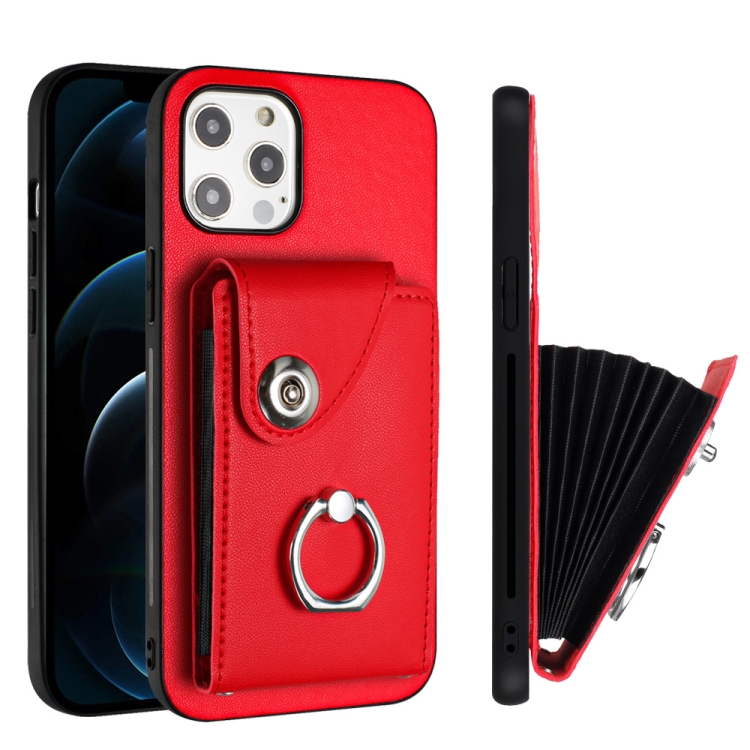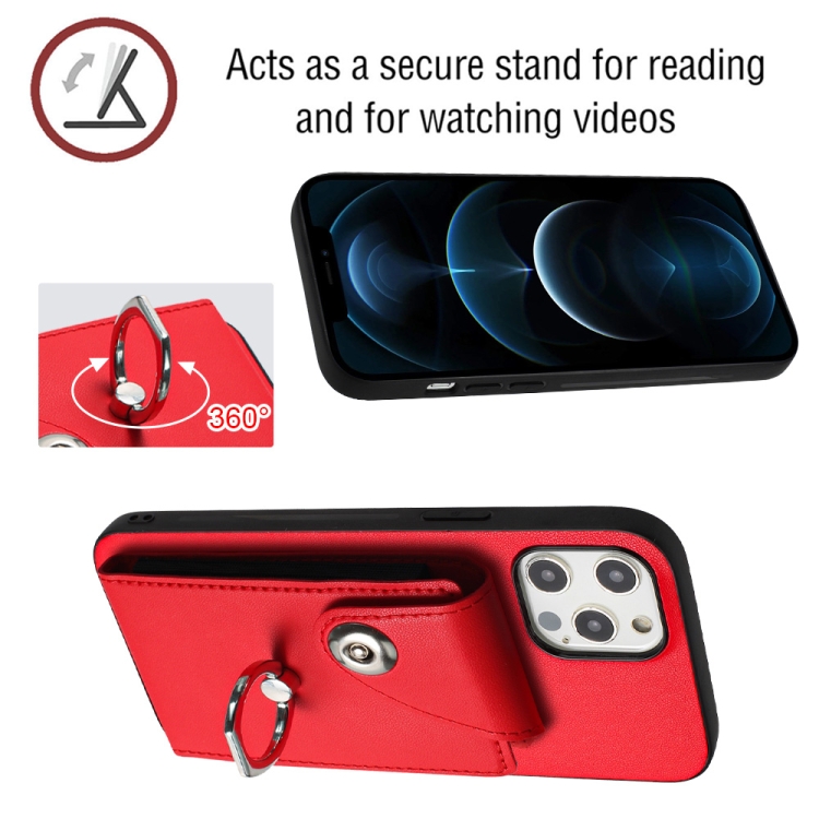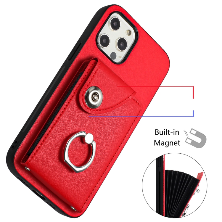Funda para Teléfono iPhone 12 Pro Max con Soporte para Anillo y Bolsa para Tarjeta (Rojo)