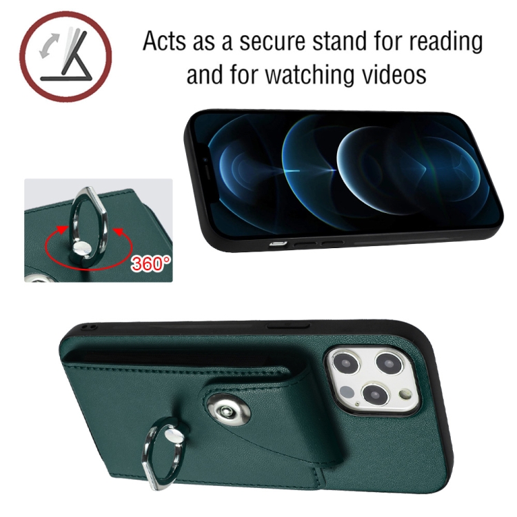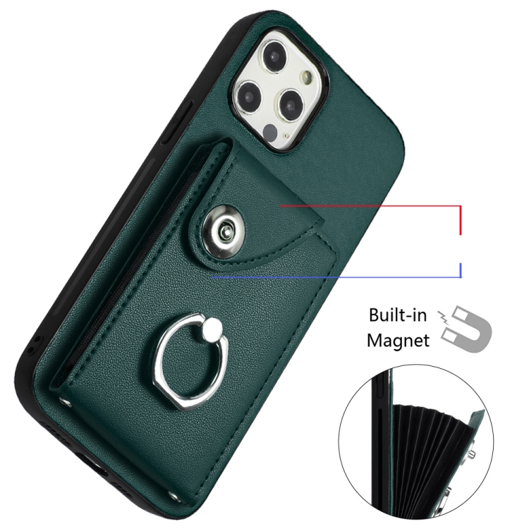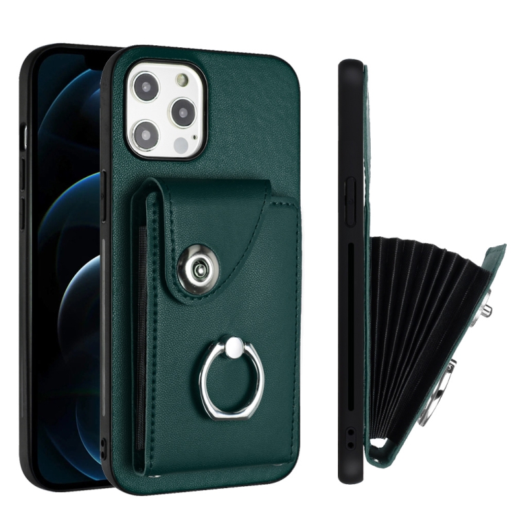 Funda para Teléfono iPhone 12 Pro Max con Soporte para Anillo y Bolsa para Tarjeta (Verde)