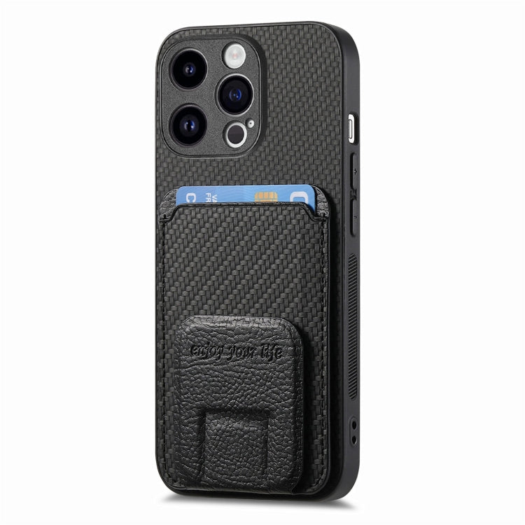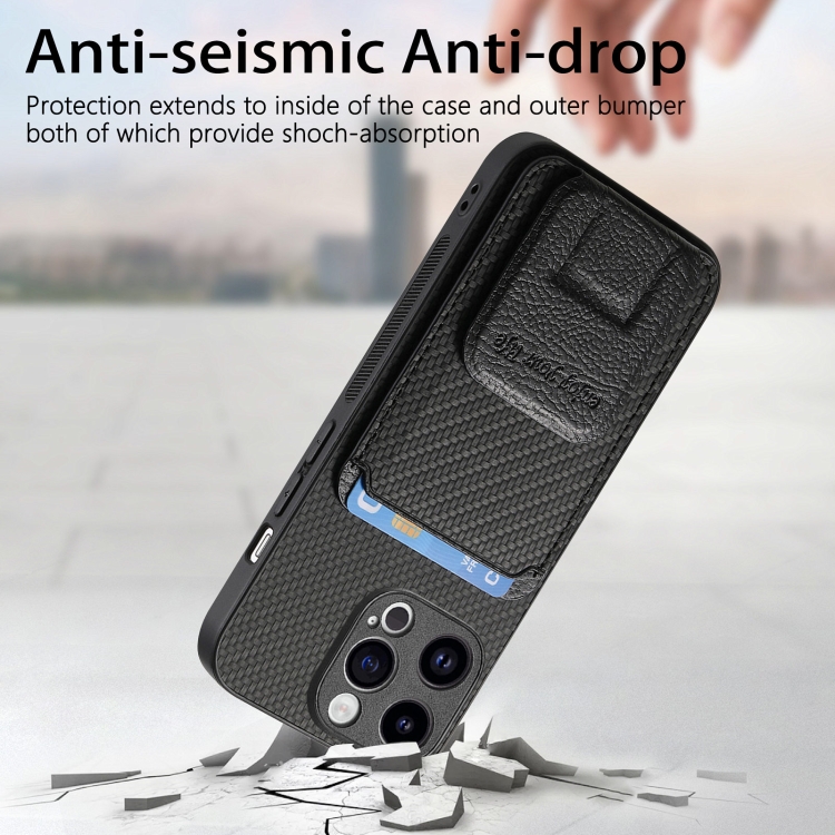 Funda para Teléfono iPhone 12 Pro Max con Soporte Plegable y Bolsa para Tarjetas de Fibra de Carbono (Negro)