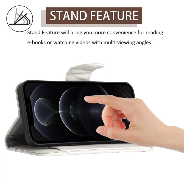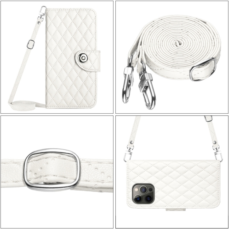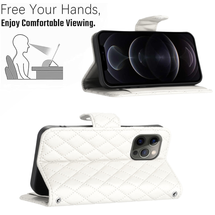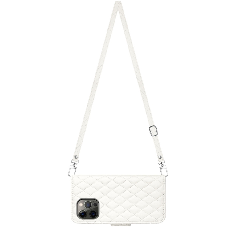 Funda para Teléfono iPhone 12 Pro Max Cuero Textura Rómbica Tapa Cordón Largo (Blanco)