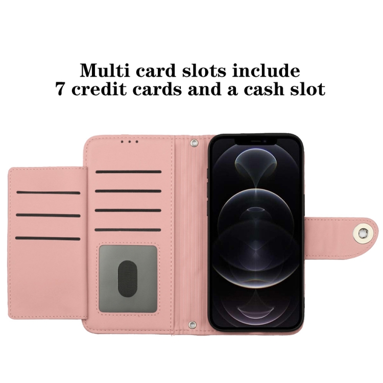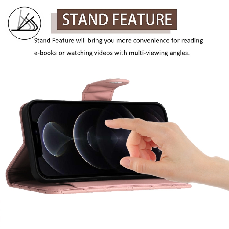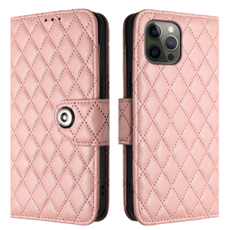Funda para Teléfono iPhone 12 Pro Max con Tapa de Cuero Textura Rómbica y Cordón (Rosa Coral)