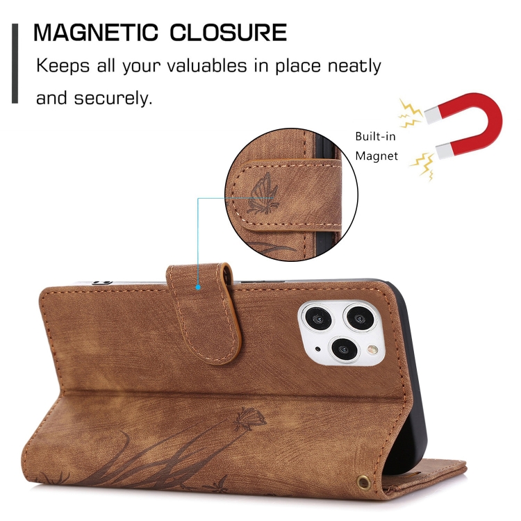 Funda para Teléfono iPhone 12 Pro Max Cuero Relieve Mariposa Orquídea (Marrón)