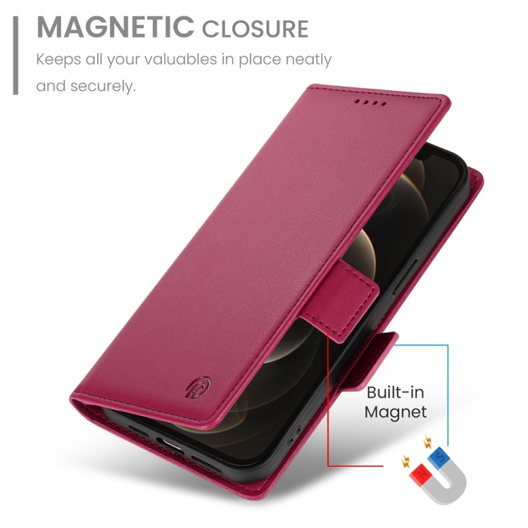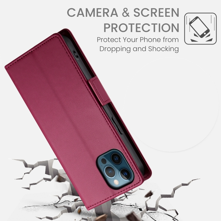 Funda para Teléfono iPhone 12 Pro Max Cuero Esmerilado Magnético con Hebilla Lateral (Rojo Vino)