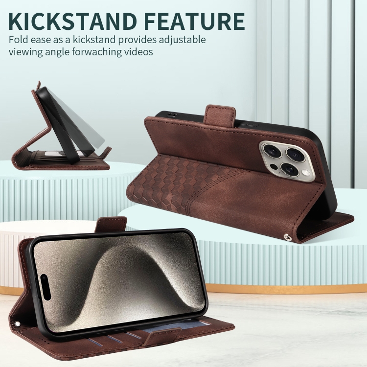 Funda para Teléfono iPhone 12 Pro Max Cuero Estrellado con Rombos en Relieve (Marrón)