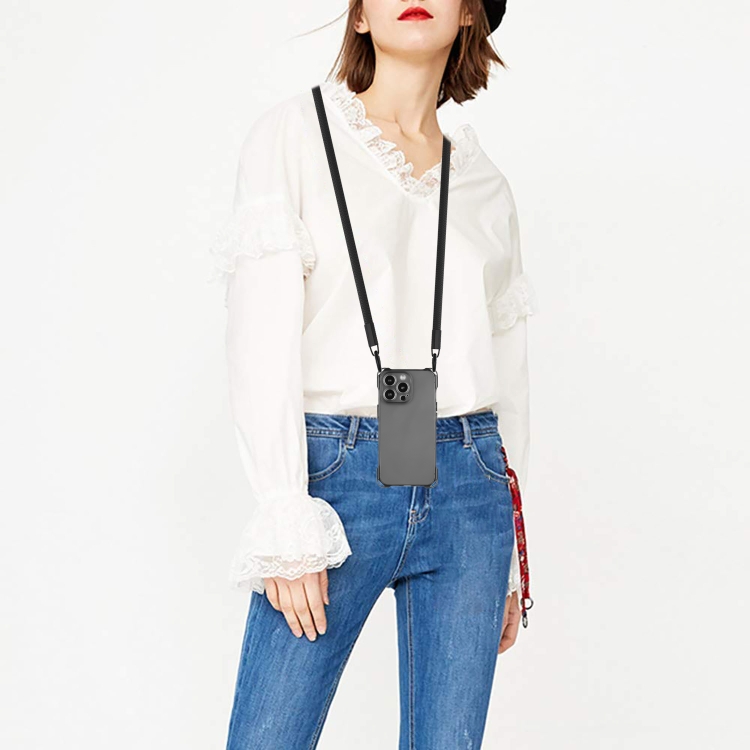 Funda para Teléfono TPU iPhone 12 Pro Max a Prueba de Golpes con Cordón (Negro)
