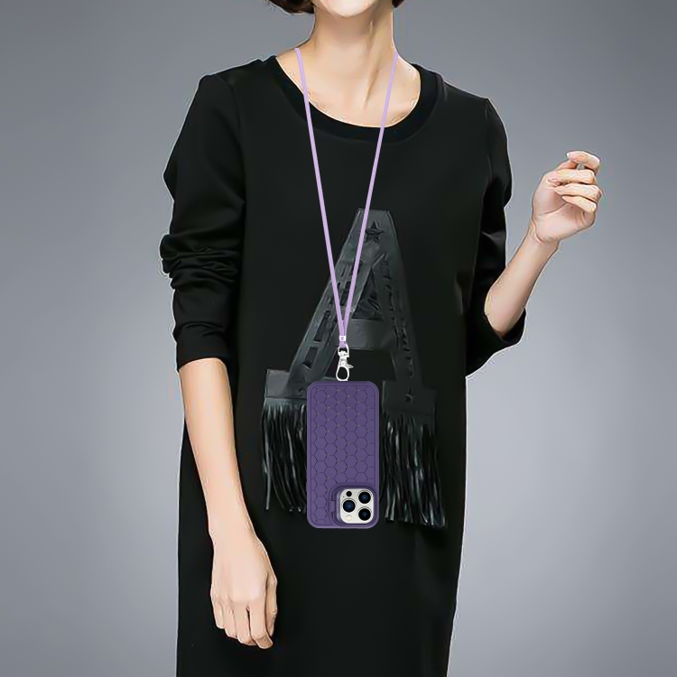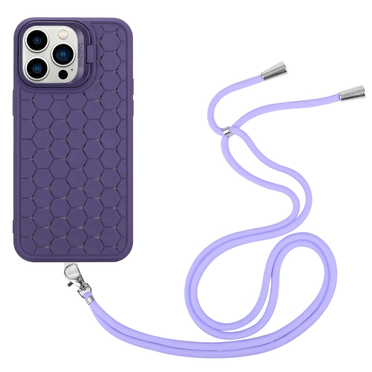 Funda para teléfono iPhone 12 Pro Max Honeycomb Radiating Lens Holder Magsafe con Cordón (Púrpura)
