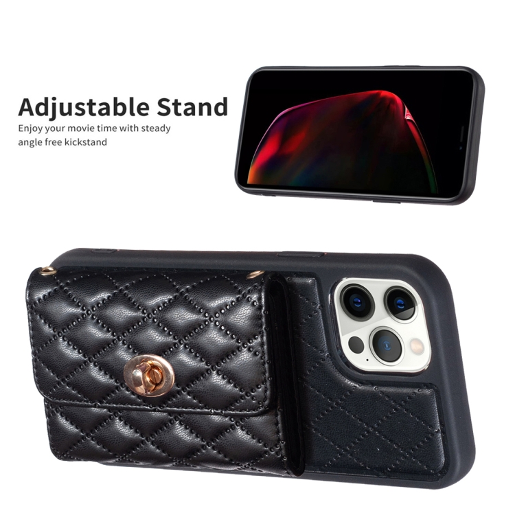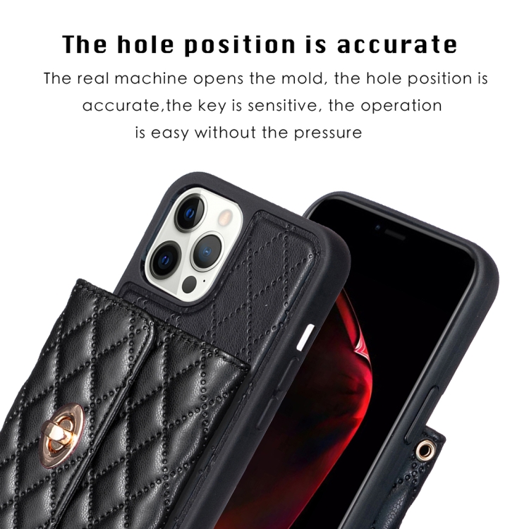 Funda de Cuero para iPhone 12 Pro Max Horizontal Metal Hebilla Cartera Rombico (Negro)