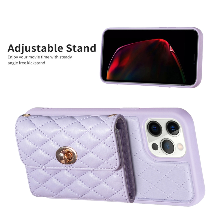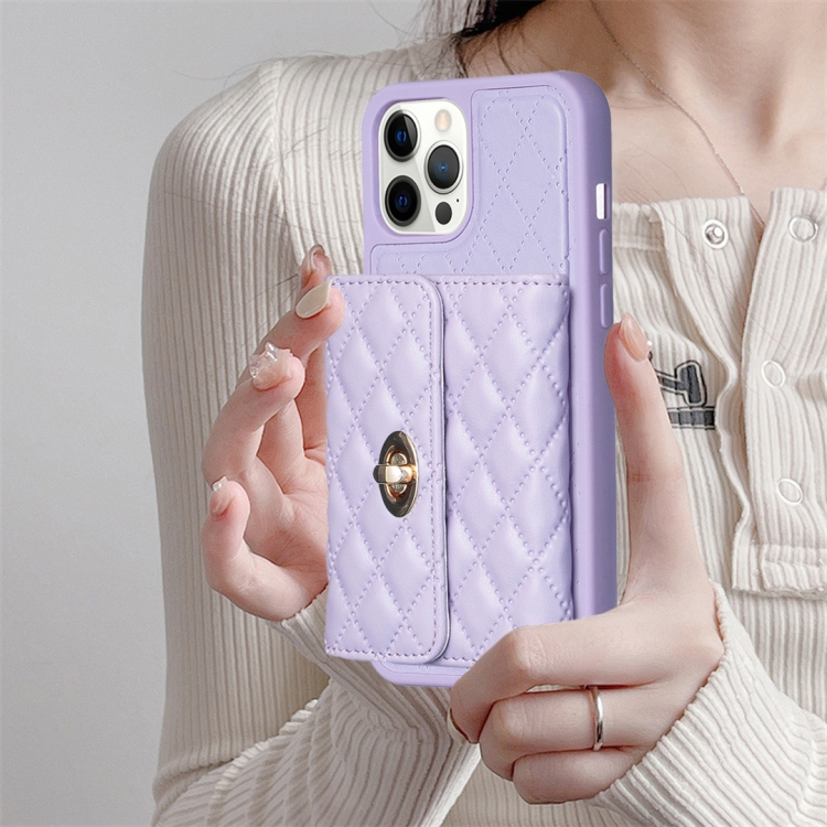Funda de Cuero para iPhone 12 Pro Max Horizontal Metal Hebilla Cartera (Púrpura)