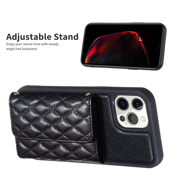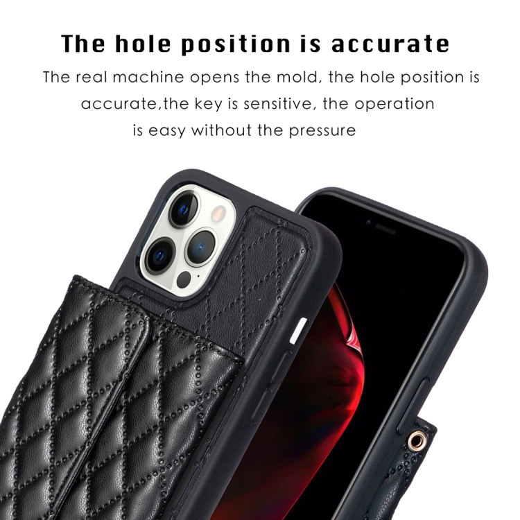Funda para iPhone 12 Pro Max Horizontal Wallet Rhombic Leather Phone Case (Negro)