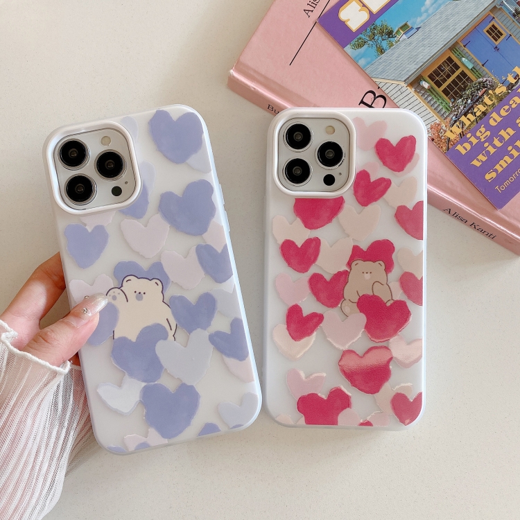 Estuche híbrido para iPhone 12 Pro Max Jelly 2 En 1 TPU y PC (Oso de Corazón Púrpura)
