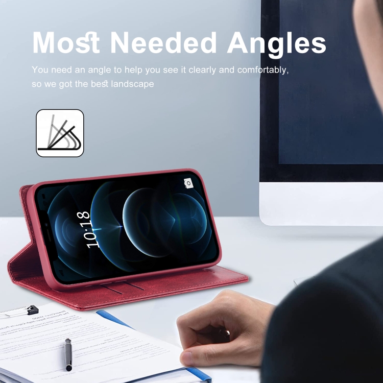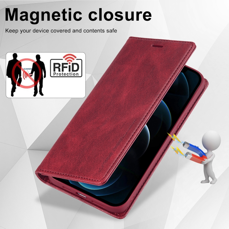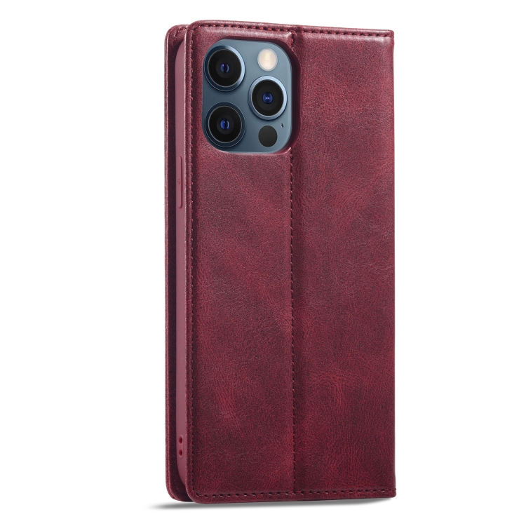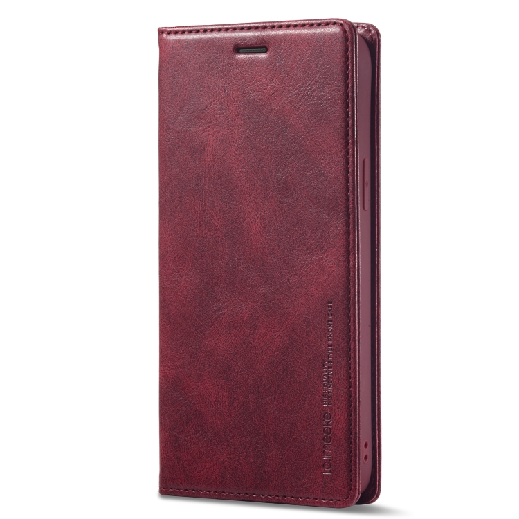 Funda de Cuero LC.ImeeKe para iPhone 12 Pro Max Antirrobo RFID (Rojo)
