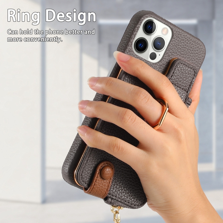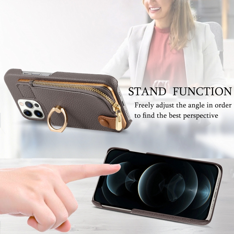 Funda para Teléfono iPhone 12 Pro Max Litchi Leather Oil Edge Ring Zipper Wallet (Gris)