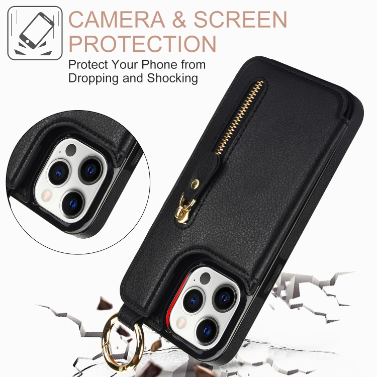 Funda para Teléfono iPhone 12 Pro Max Litchi Texture Cremallera Doble Hebilla con Bolsa para Tarjetas (Negro)