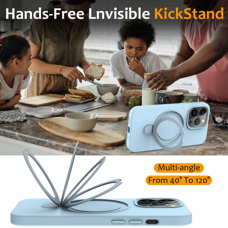 Funda para Teléfono iPhone 12 Pro Max Magsafe Silicona Líquida Magnética con Soporte para Anillo (Azul Cielo)