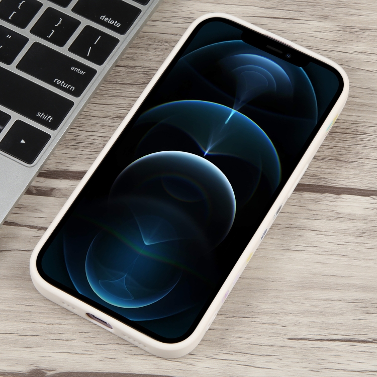 Funda de Silicona Líquida para iPhone 12 Pro Max Milk Tea Astronaut Pattern (Blanco Marfil)