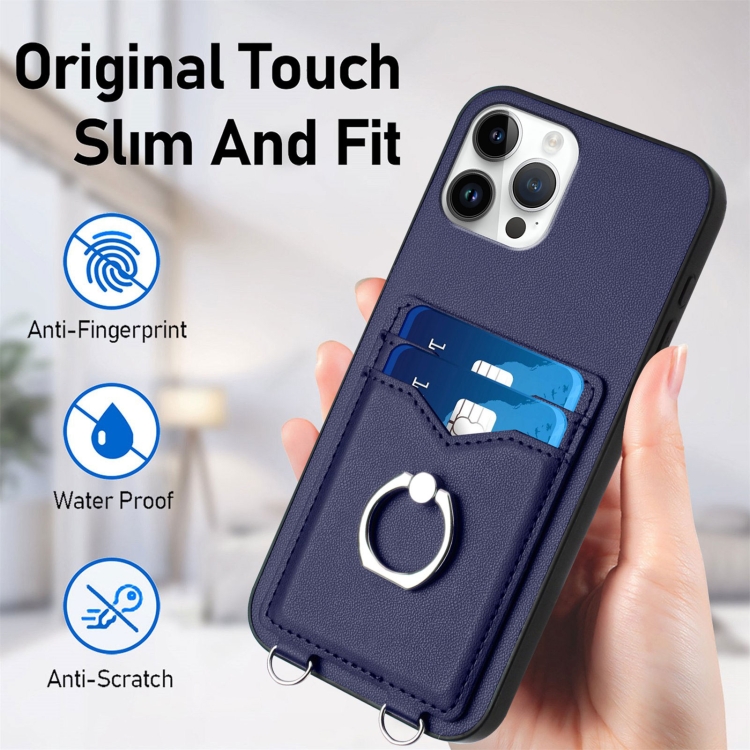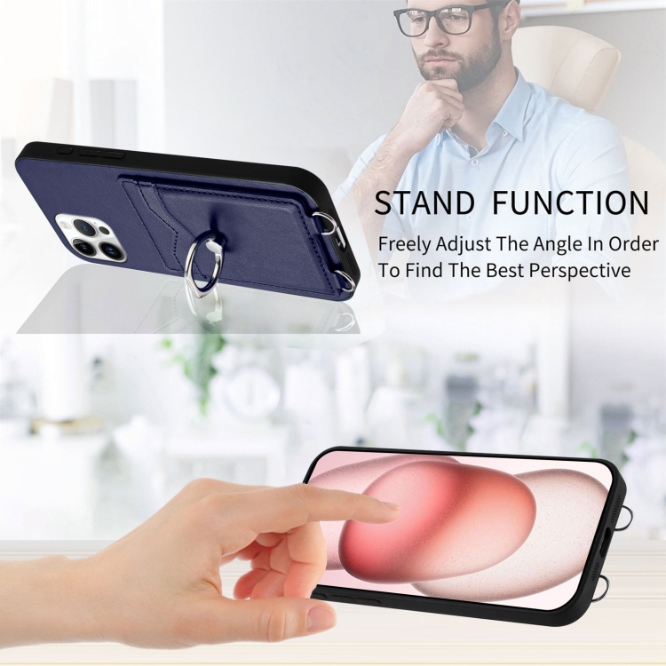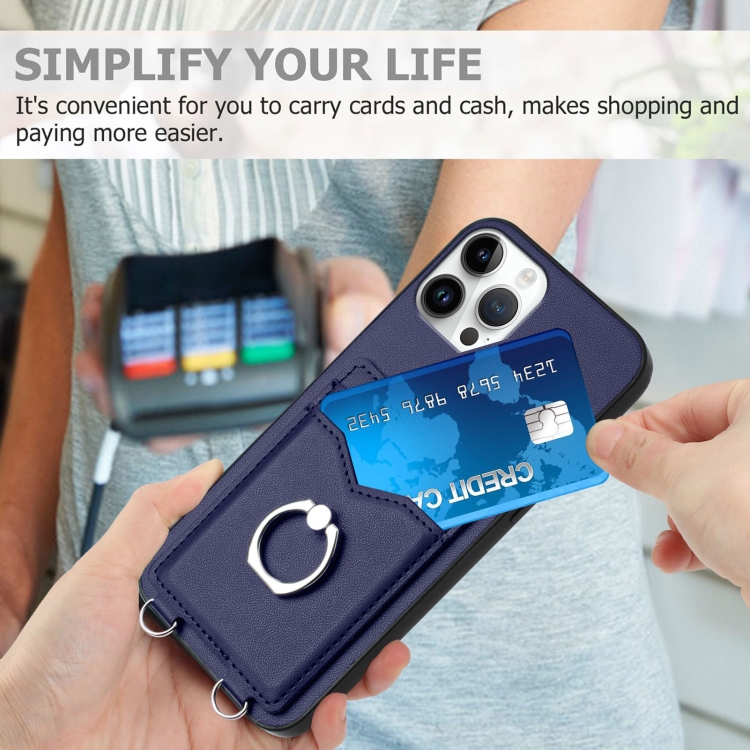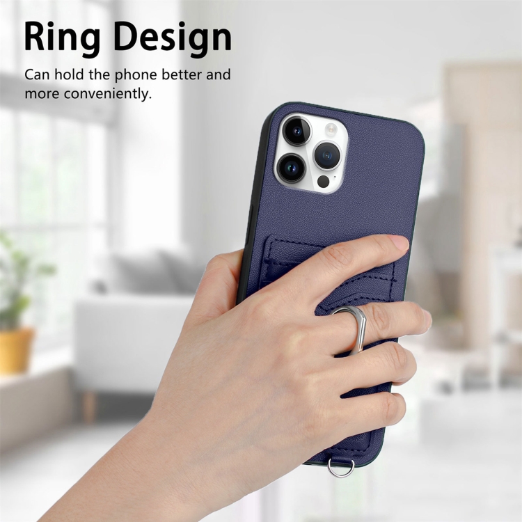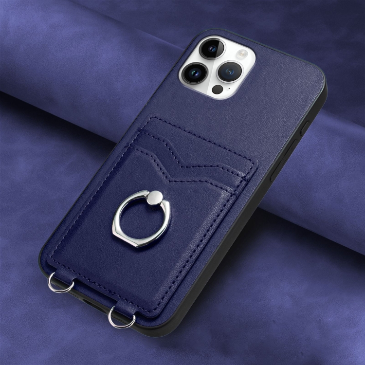 Estuche para Teléfono iPhone 12 Pro Max R20 con Soporte para Tarjeta y Anillo (Azul)
