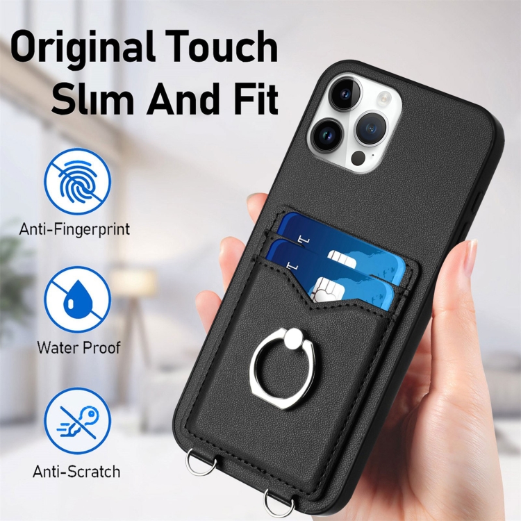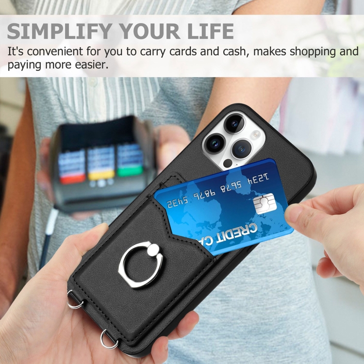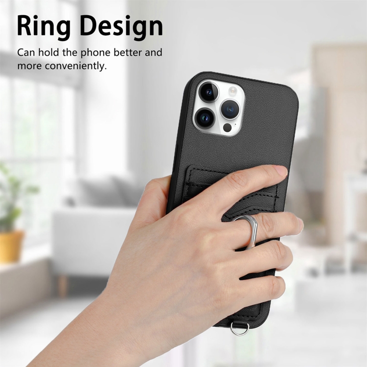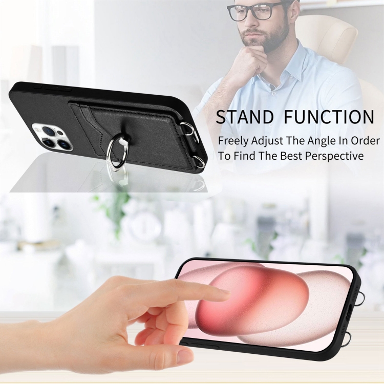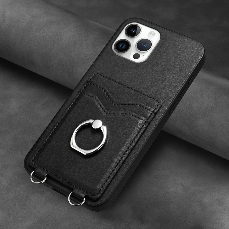 Estuche para Teléfono iPhone 12 Pro Max R20 con Soporte para Tarjeta y Anillo (Negro)