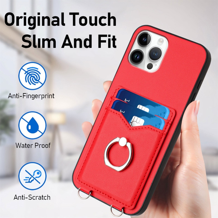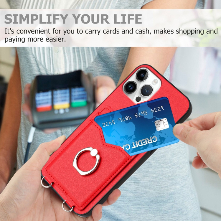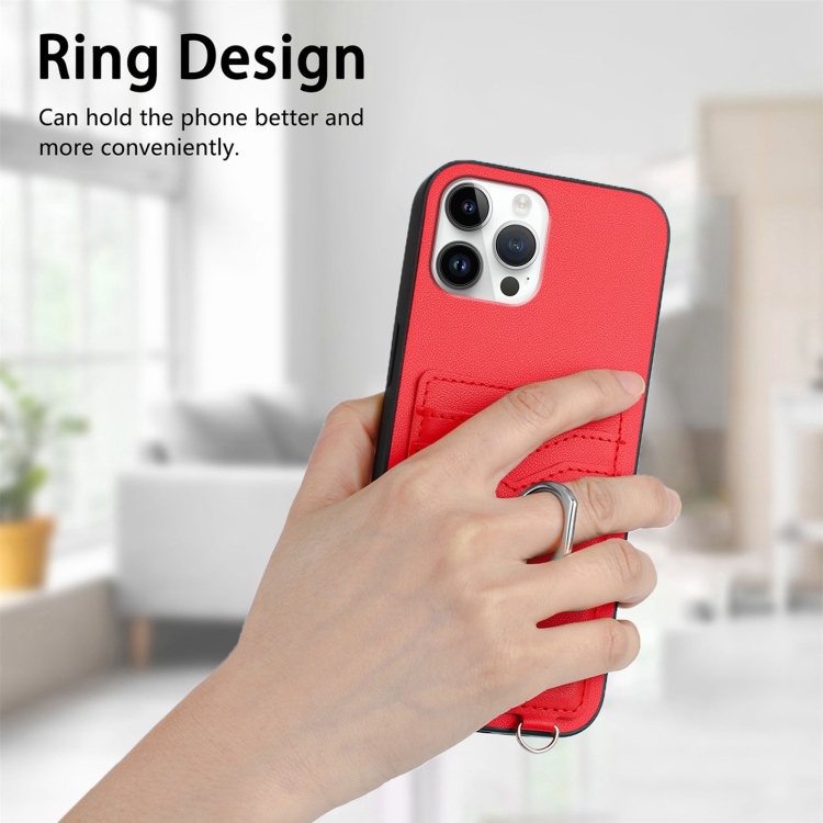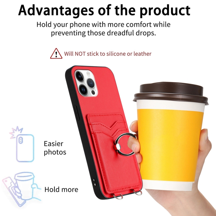 Estuche para Teléfono iPhone 12 Pro Max R20 con Soporte para Tarjeta con Anillo (Rojo)