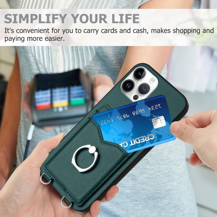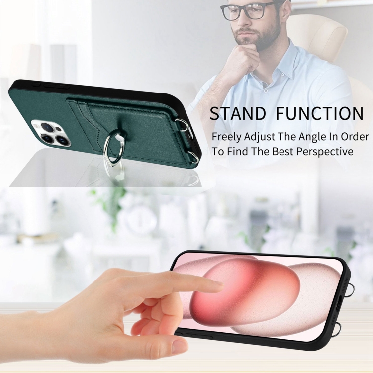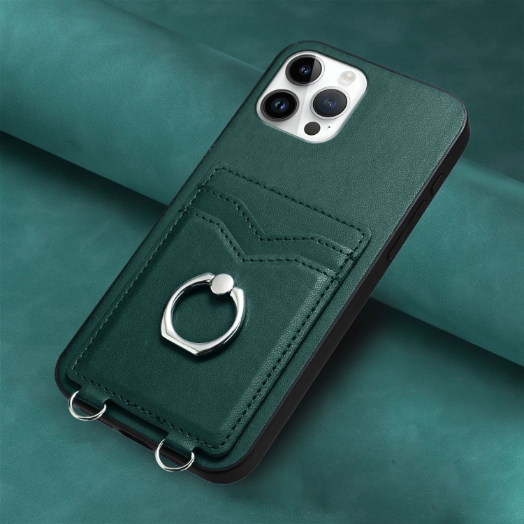 Estuche para Teléfono iPhone 12 Pro Max R20 con Soporte para Tarjeta y Anillo (Verde)