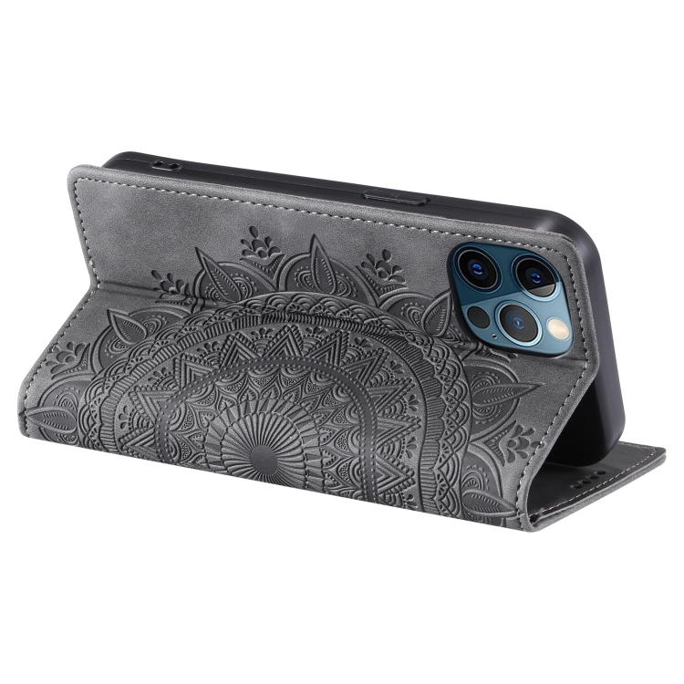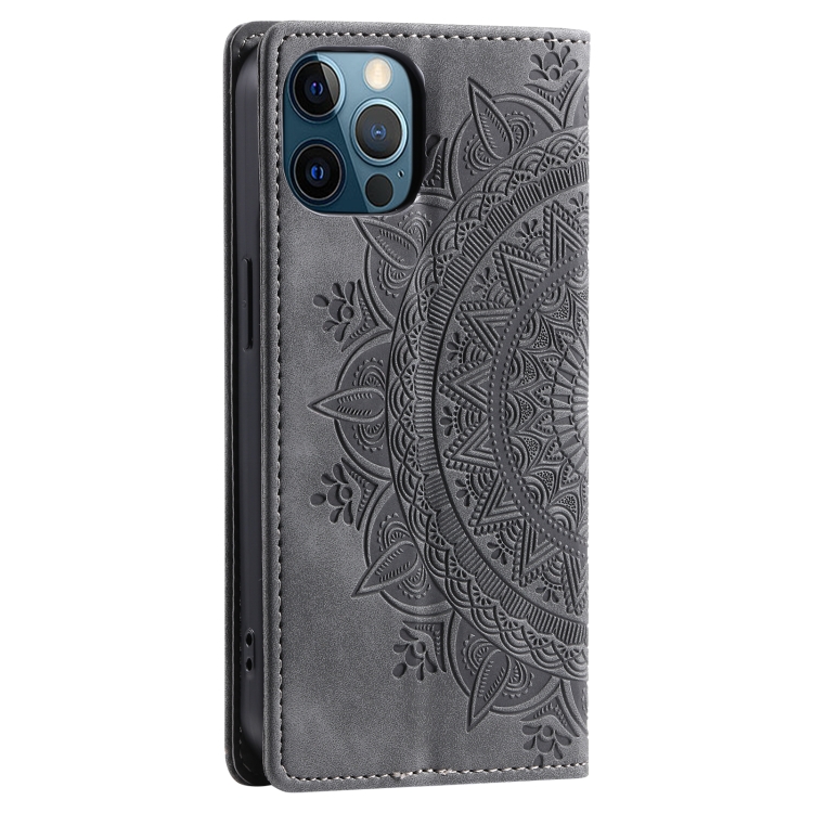 Funda de Cuero Magnética Totem para iPhone 12 Pro Max En Relieve (Gris)