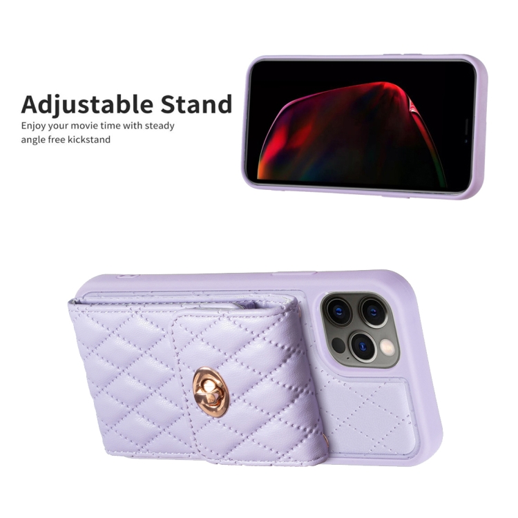 Funda de Cuero para iPhone 12 Pro Max Cartera Rombico con Hebilla de Metal Vertical (Púrpura)