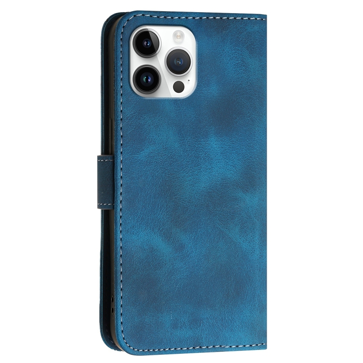 Funda de Cuero para iPhone 12 Pro Max Yx0080 con Tapa y Patrón de Mariposa en Cuadrícula con Cordón (Azul Oscuro)