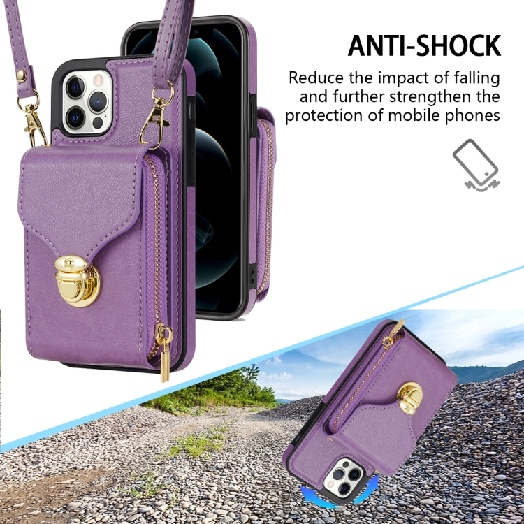 Funda para iPhone 12 Pro Max Zipper Hardware Card Wallet Phone Case (Púrpura)