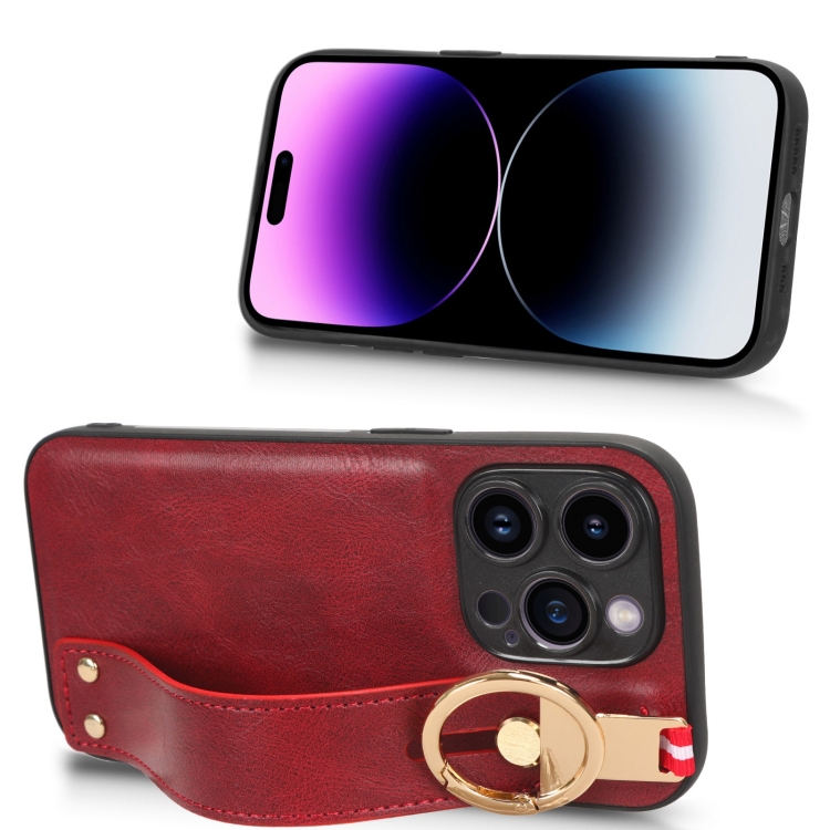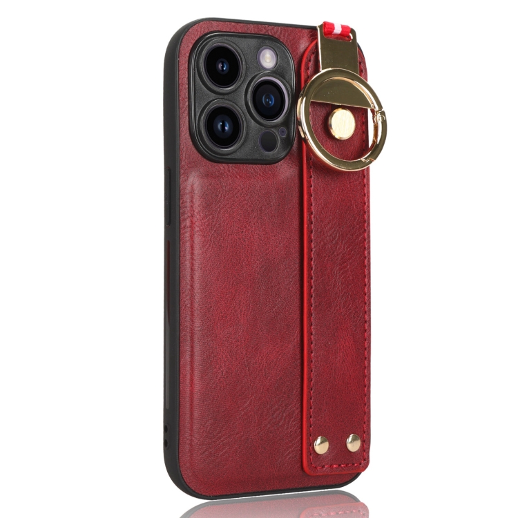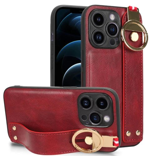 Funda Trasera de Cuero para iPhone 12 Pro Muñequera (Rojo)