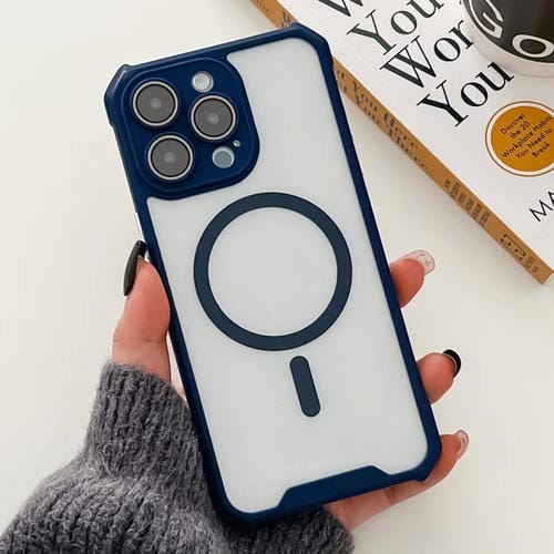 Película de Lente Bicolor iPhone 12 Pro Magsafe Cuerno Magnético Acrílico + Estuche TPU (Azul)
