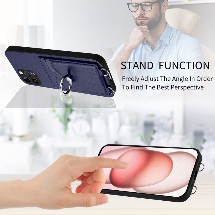 Estuche para Teléfono iPhone 12 Pro R20 con Soporte para Tarjeta y Anillo (Azul)